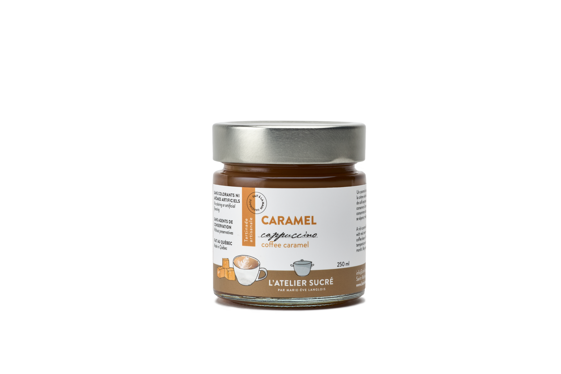 Infusé de grains de café espresso, ce caramel gourmand se déguste aussi bien sur un croissant qu'en dessert sur un gâteau. N’hésitez pas à le réchauffer légèrement pour en verser sur de bonnes crêpes ou encore y tremper des fruits de saison.
